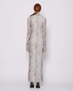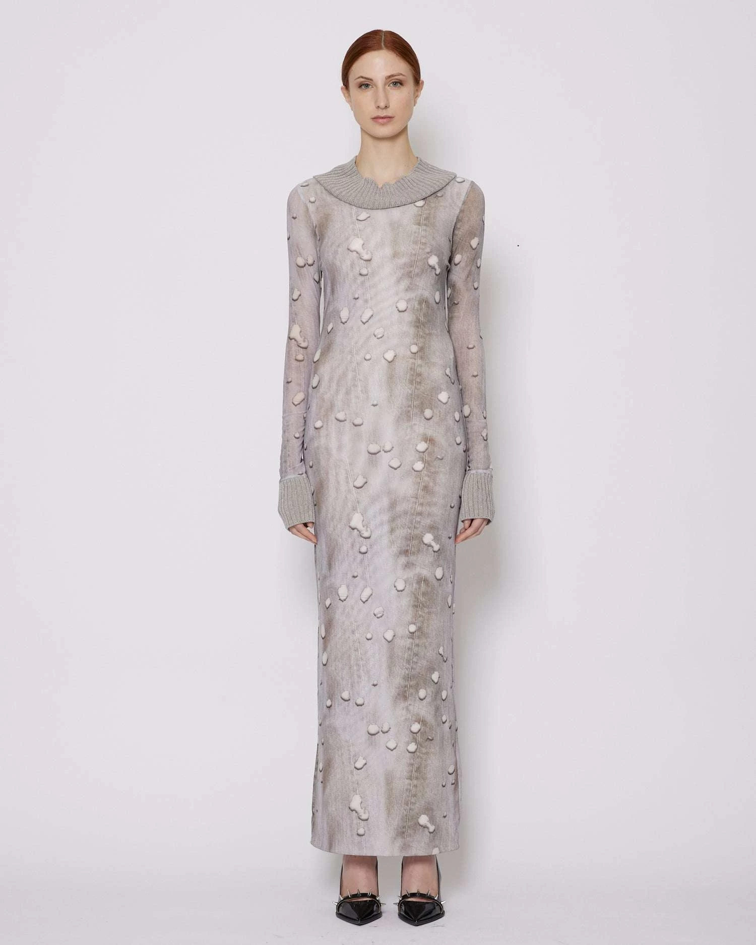 Abito lungo con polsini a coste e pattern allover.