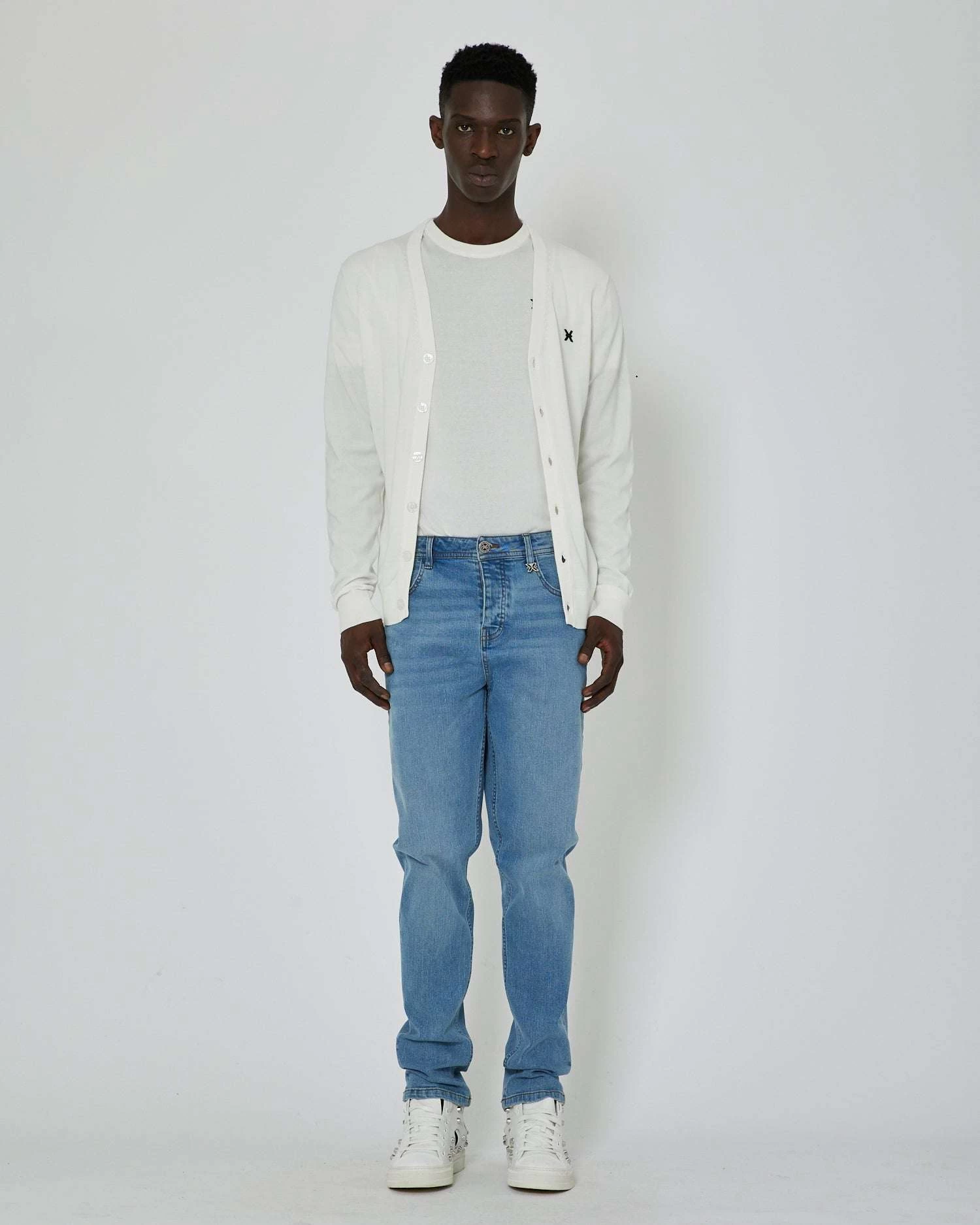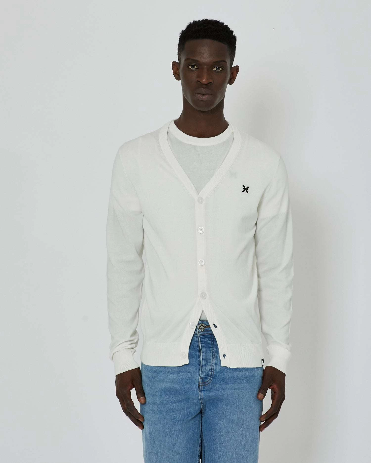 Cardigan con logo a contrasto sul davanti e banda bicolor sul retro