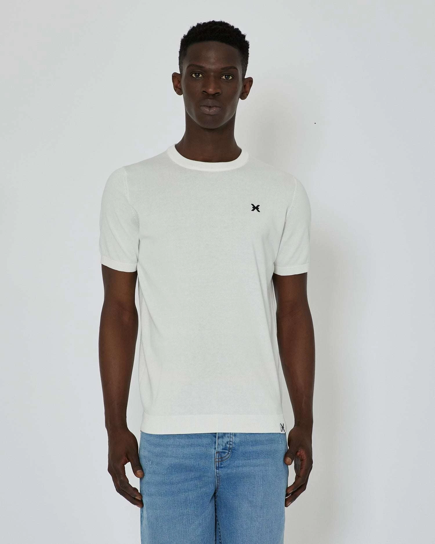 Maglia con logo a contrasto sul davanti e banda bicolor sul retro