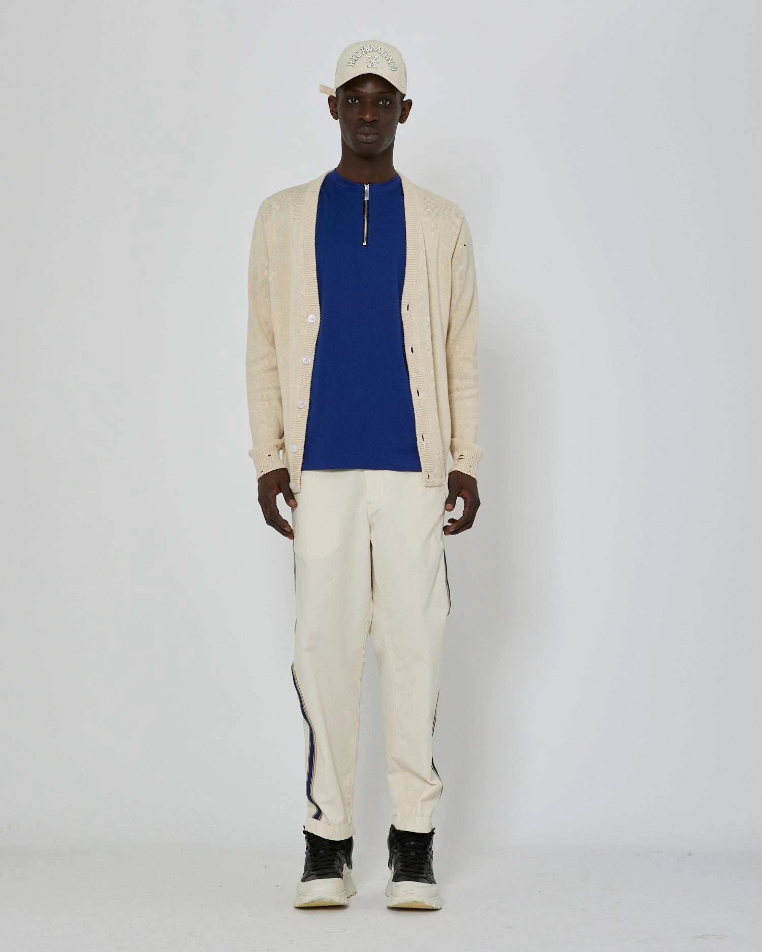 - Tasche frontali a filetto posteriori con bottone