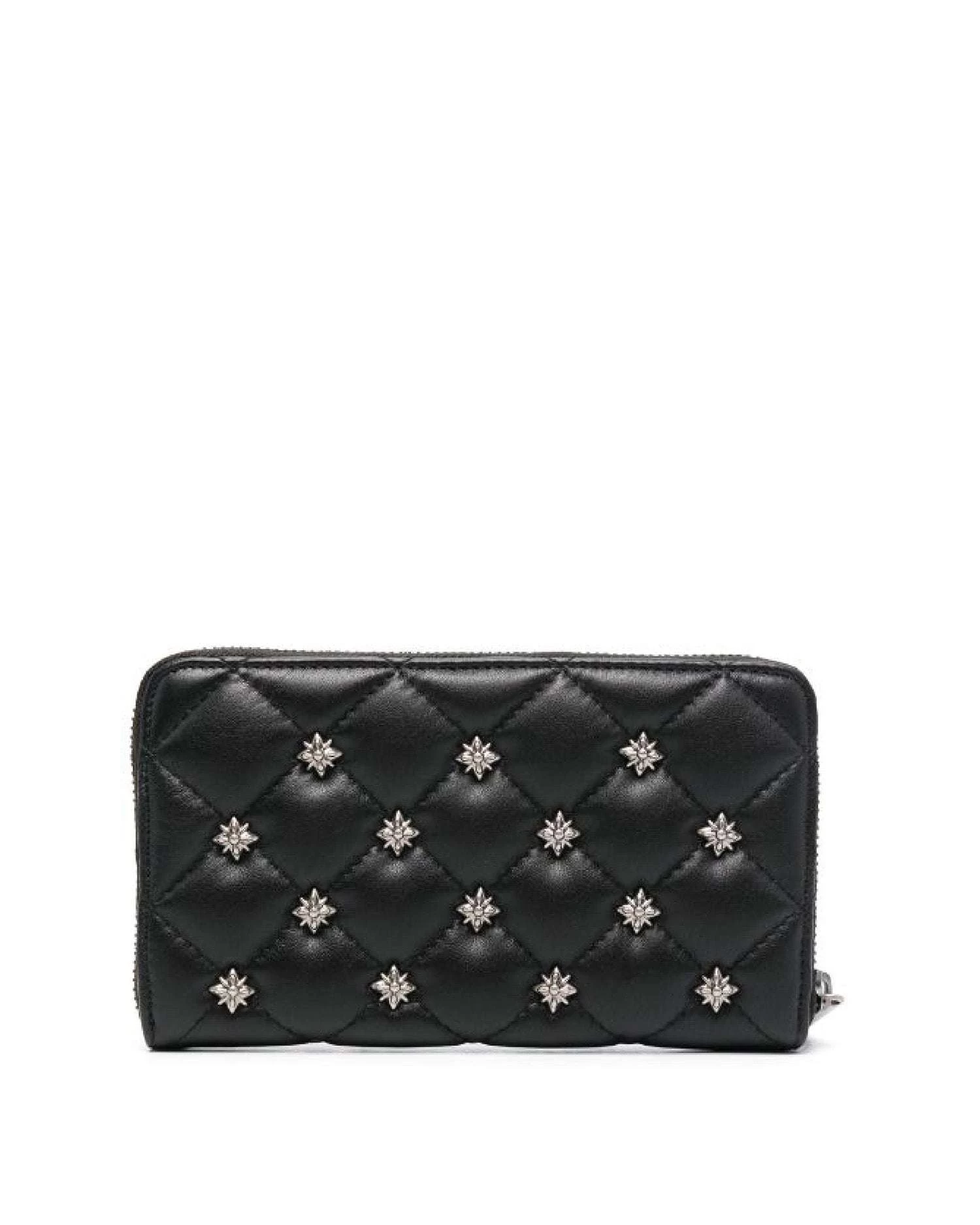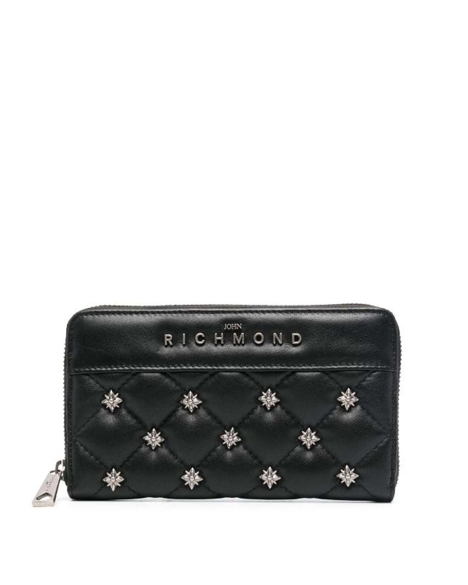 Portafoglio con borchie all over e con logo a contrasto