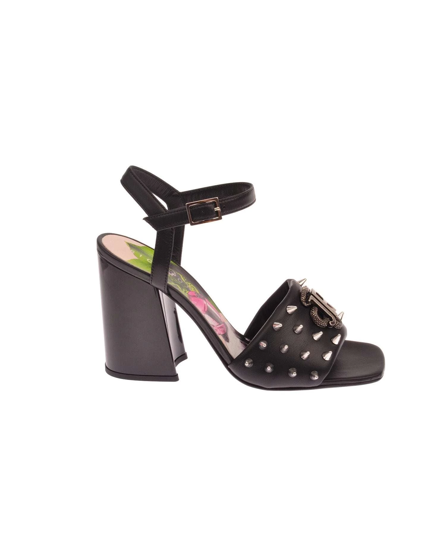 Sandalo con fascia borchiata e logo