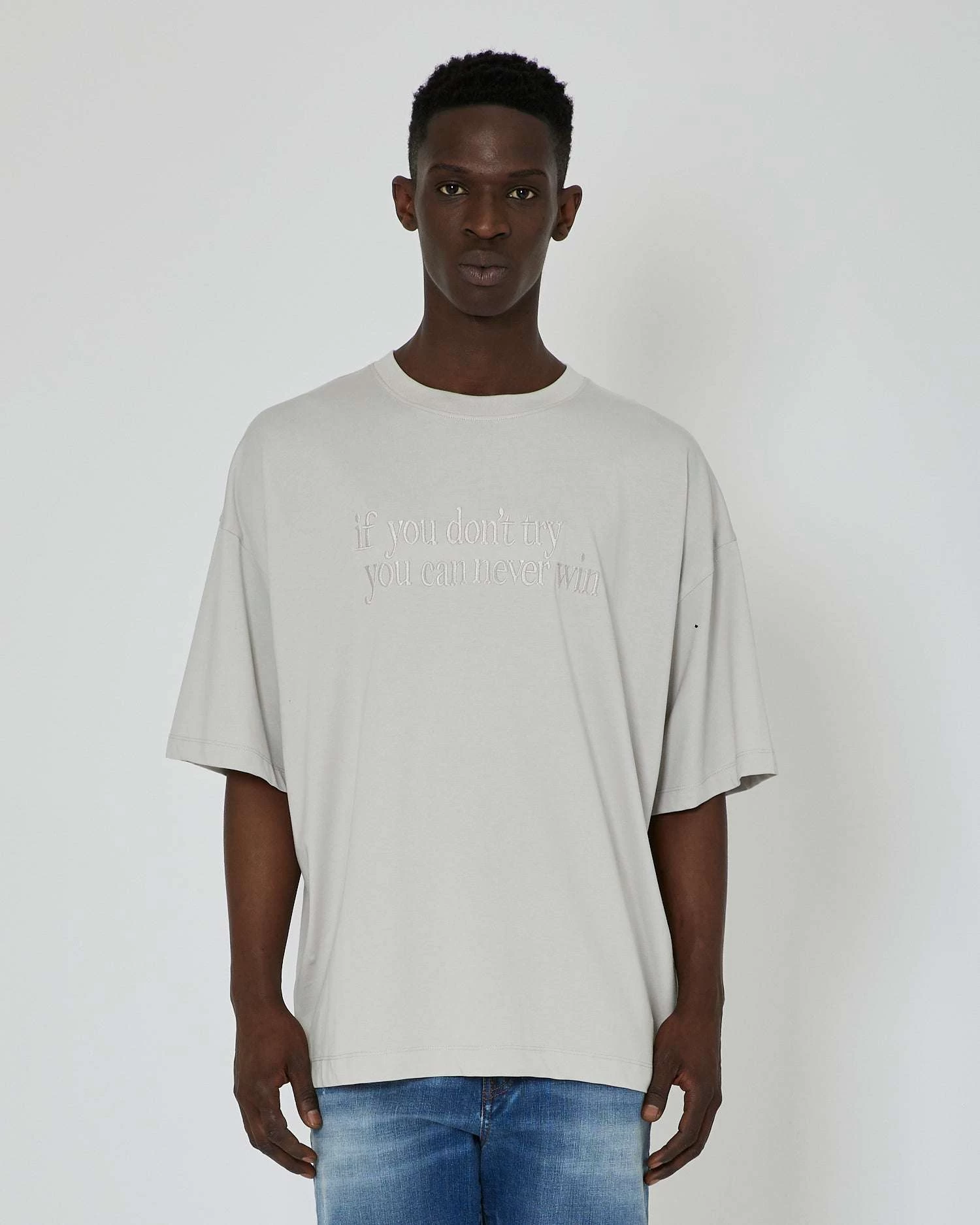 T-shirt over con stampa ricamata sul davanti