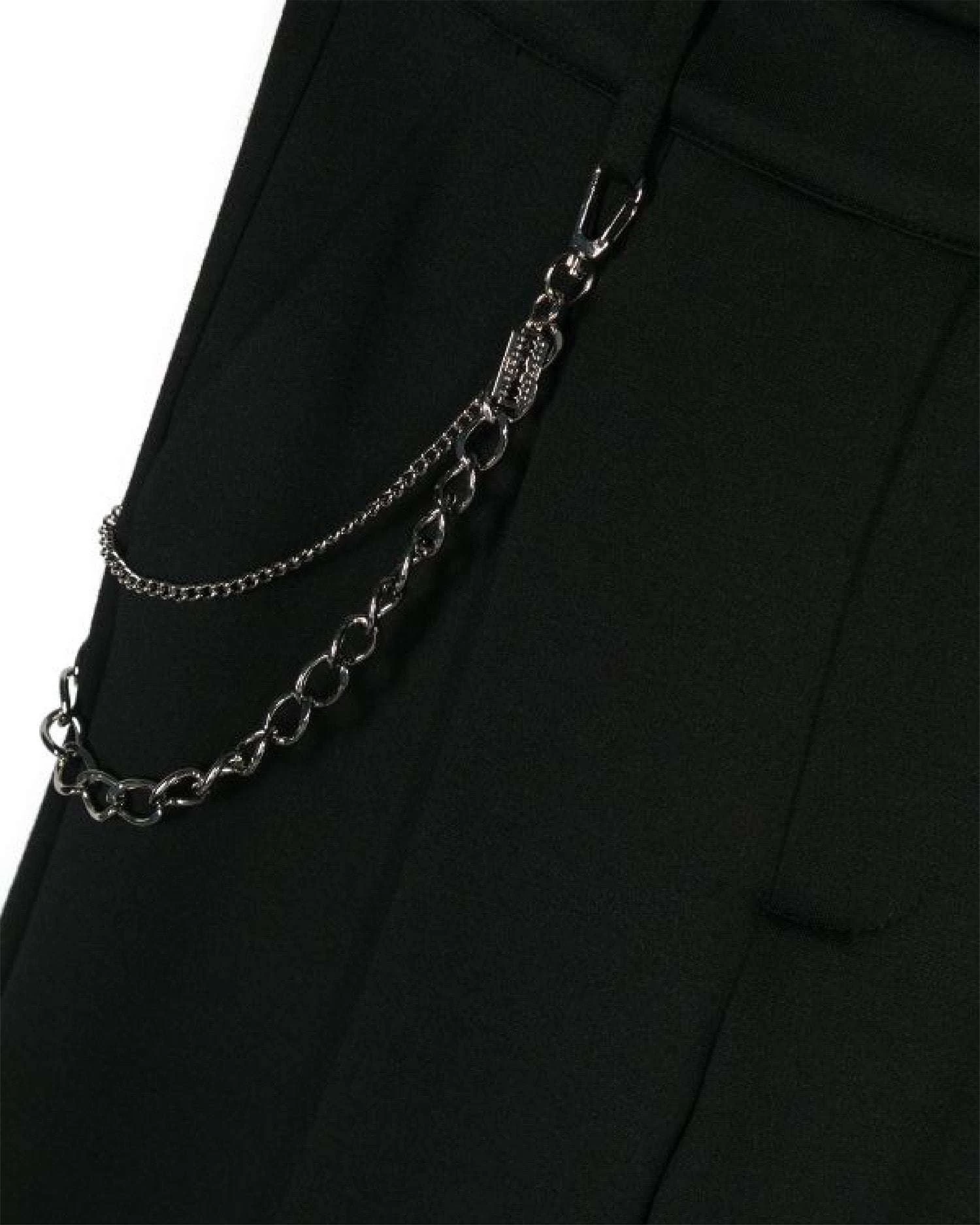 - Vita elasticizzata sul retro. Chiusura con bottone e zip sul davanti.