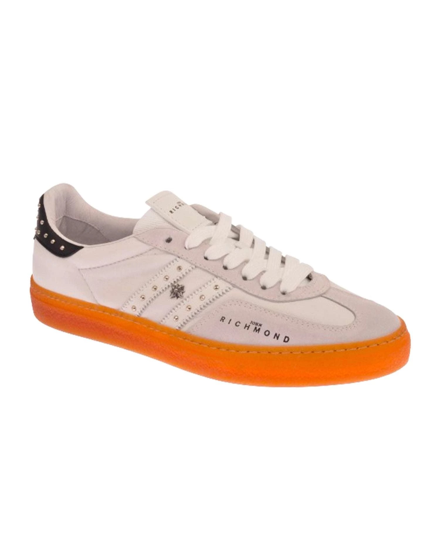 Sneakers in pelle con logo laterale e bande a contrasto. Dettaglio in pelle scamosciata e borchiette decorative.